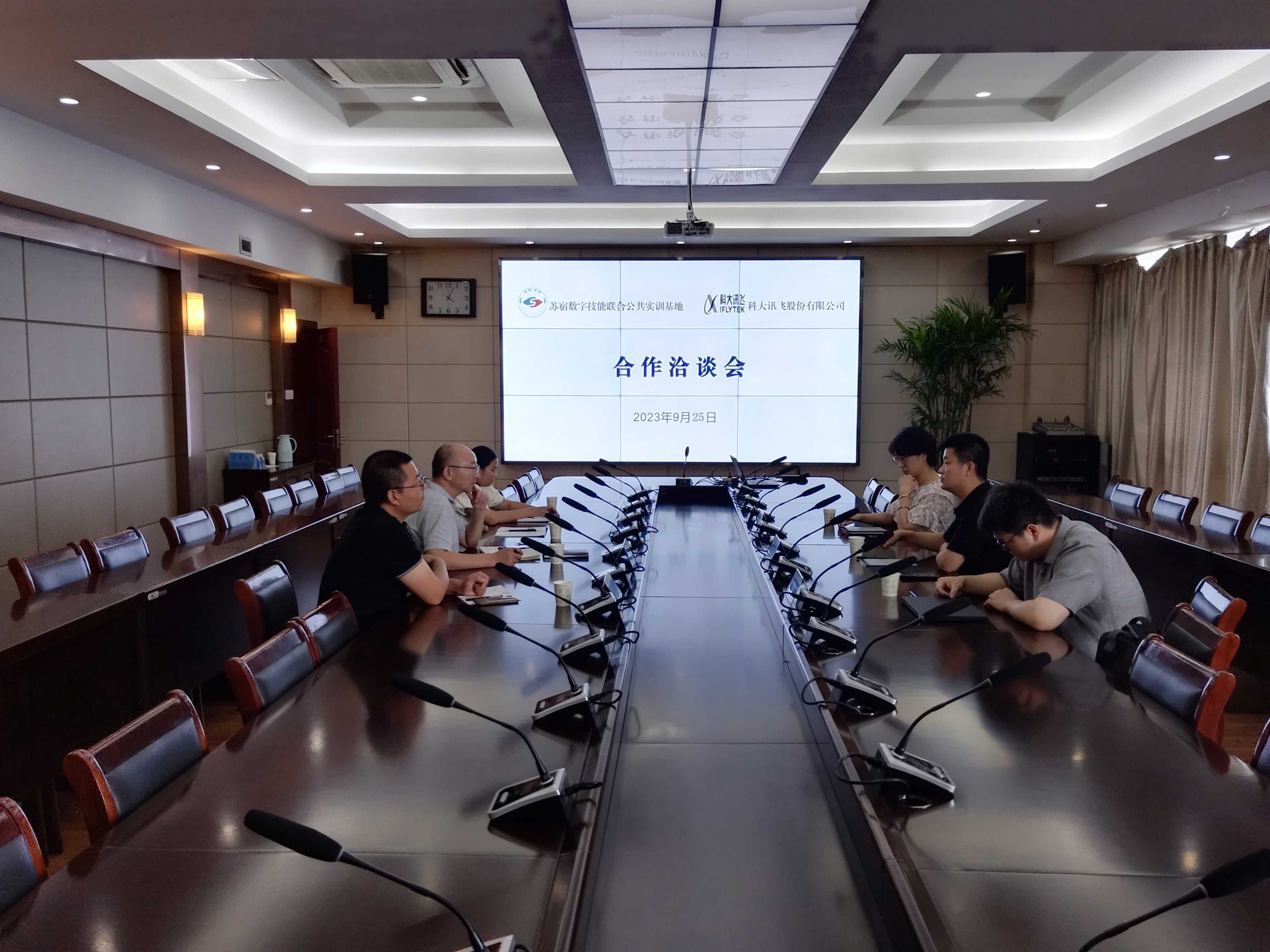 为推进落实南北挂钩项目,高水准建设数字技能实训基地,9月25日下午,我院与科大讯飞股份有限公司开展苏州宿迁数字技能联合公共实训基地建设合作洽谈。