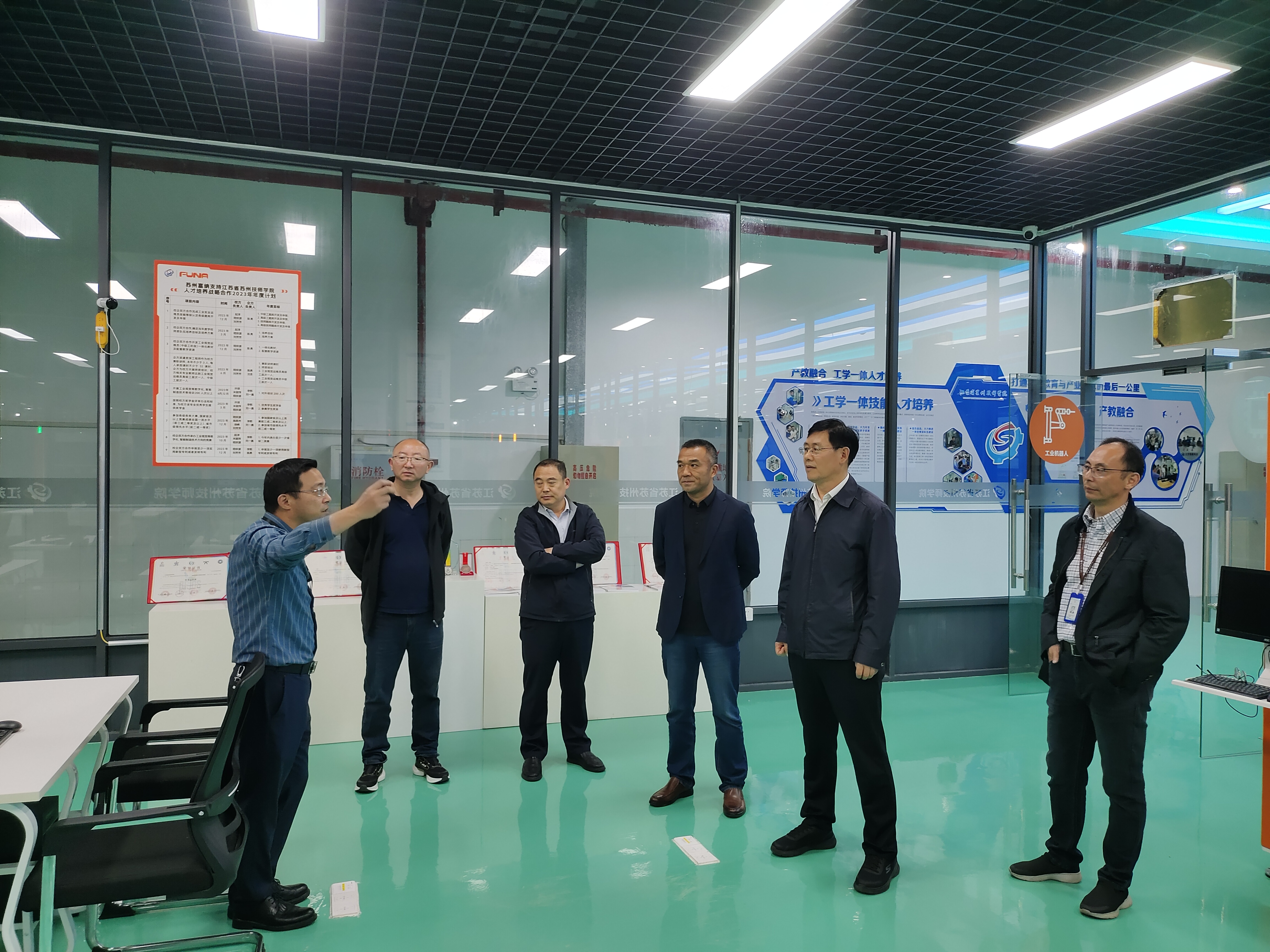 李军一行实地考察了省苏技工业视觉实训中心和数字孪生技术应用实训中心,听取了省苏技关于工业视觉和数字孪生两个专业建设发展方面的详细介绍。在随后的座谈交流会上,我院科研处处长孙永斌就“苏州宿迁数字技能联合公共实训基地”建设方案及项目进展情况进行详细介绍,随后双方围绕建设方案进行了深入的交流探讨。