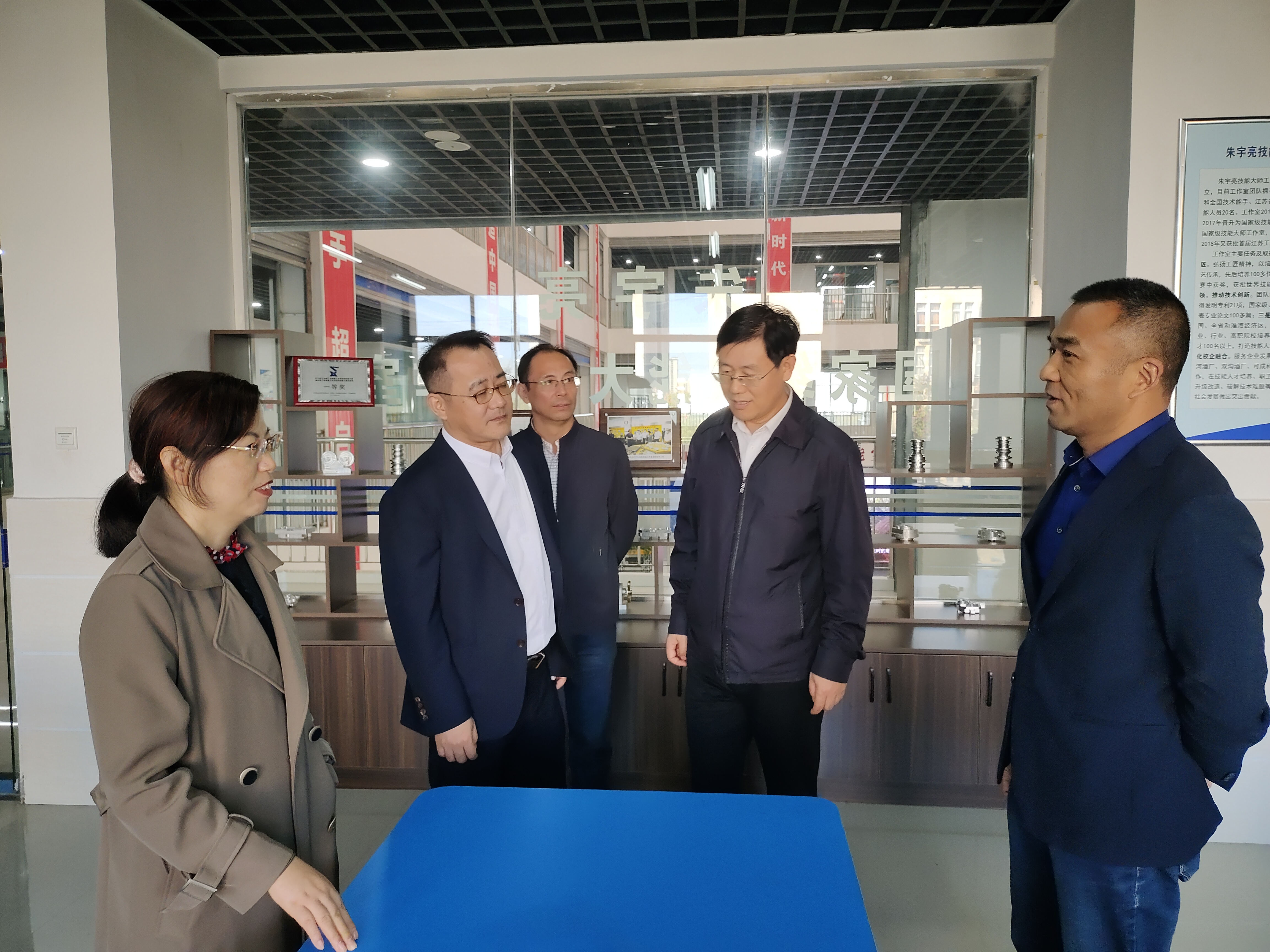 曹亮一行首先参观了学院校史馆、实训基地、校企工作站等地,重点考察了“苏州宿迁数字技能联合公共实训基地”建设场地,听取了项目建设情况介绍及下一步推进思路,对基地建设规划、具体实施方案和预期项目绩效给予充分肯定。