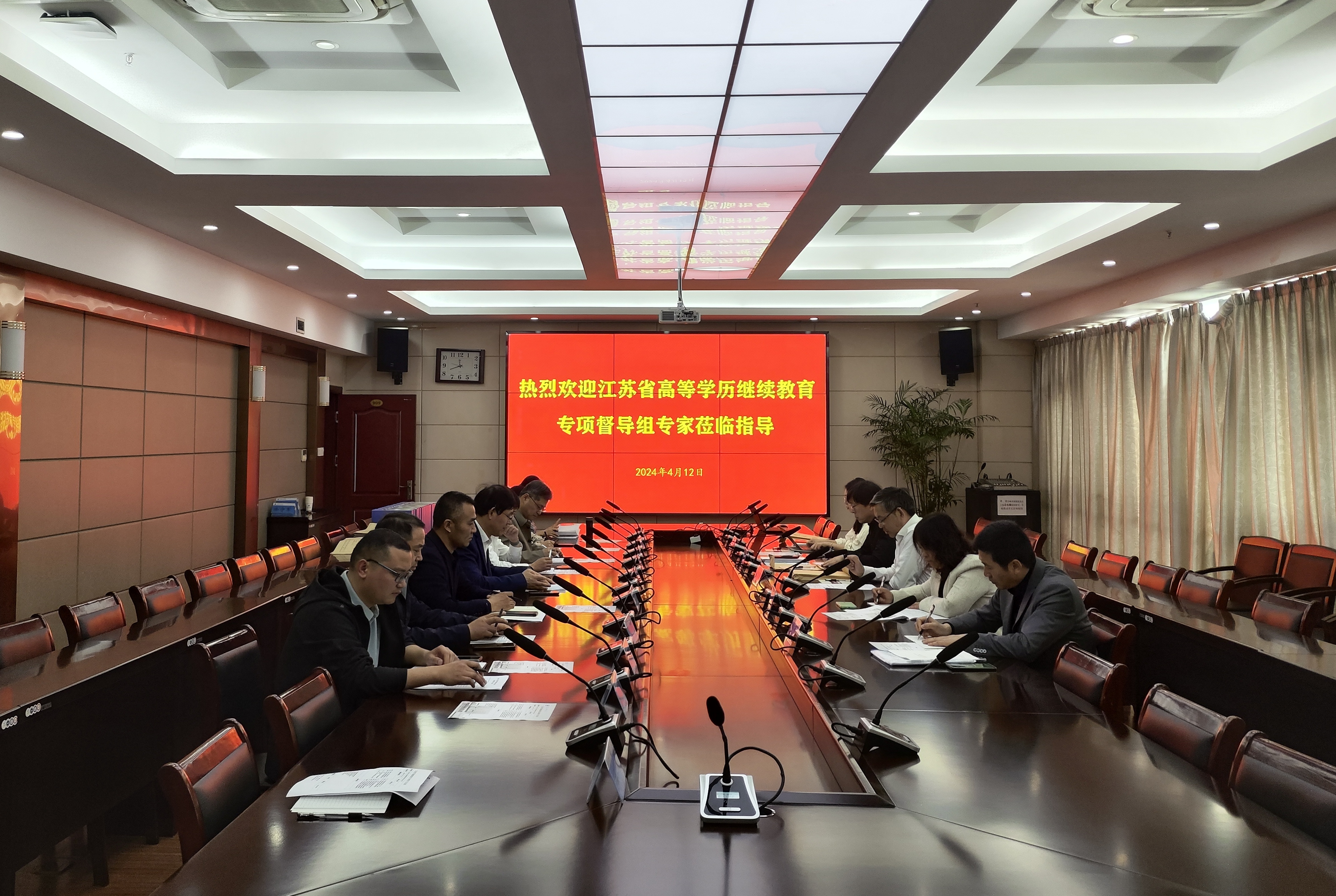 4月12日上午,江苏省2024年高校学历继续教育专项督导实地督查第六专家组一行来我院检查指导工作。我院党委书记、院长李军,副院长朱宇亮,继续教育主办高校江阴职业技术学院继续教育学院副院长何伟等参加汇报反馈会。