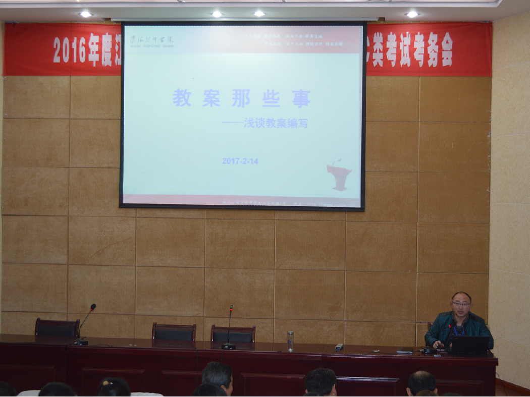 教务处负责人孙永斌首先作了“教案那些事——浅谈教案编写”的专题讲座,对本学期新改版的教案模板进行解读,并就如何进行教案编制作生动讲解。具体阐述了“教案的作用”、“好教案的特点”、“关于教案模板”、“如何写好优秀教案”四个问题,重点结合我院教师教案进行针对性点评,就教案格式、内容、撰写技巧、注重事项等进行了详细指导。