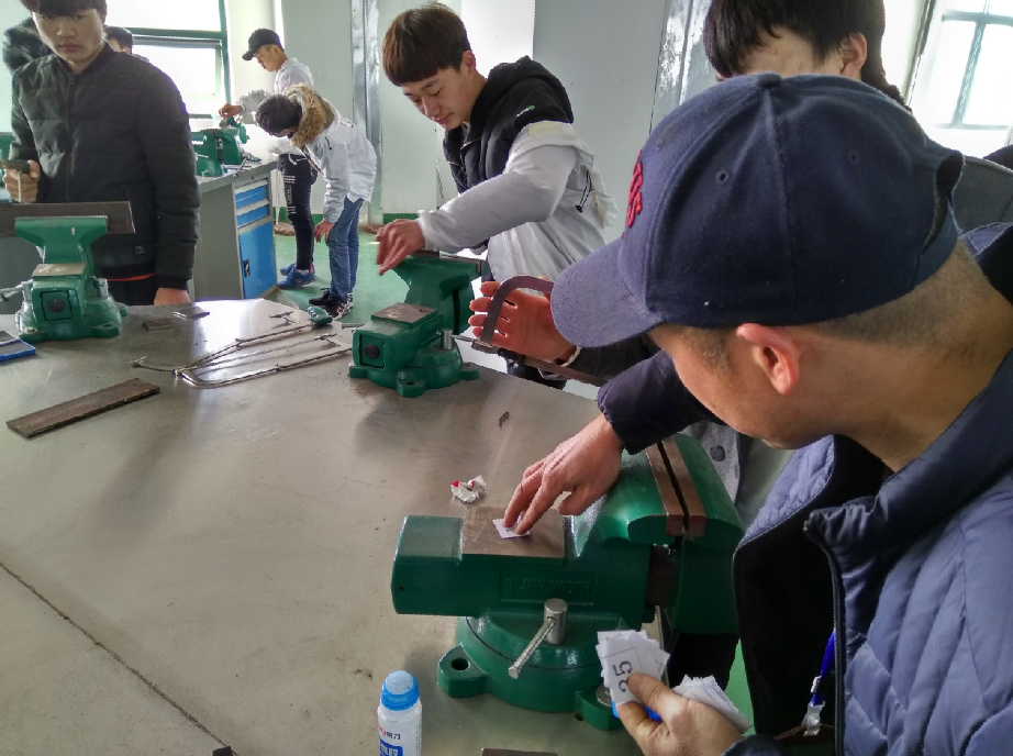 “单科精进”强调学习的次序性,学一门课就扎扎实实学好、学精、学透,学生只有在通过了系部和专业教师的专项测评后才能再学习下一门课程。相比传统的教学方法,“单科精进”教学更加注重实训,专注于培养学生的基本素养和技术能力。本次“单科精进——钳工”考核由教务处组织,按照“学什么,考什么”的原则,学生考试内容与学习内容紧密联系,学生说:“老师为了让我们尽快的掌握钳工技能,每天我们一起训练,手把手教我们操作技巧和安全生产要求。我们从完全不了解这个技术到现在的有所了解,老师教会我们很多东西。单科精进课与以往上课完全不一样,我学到了真正的技术,给了我很大的信心。”考试过程中,学生们全情投入,在小小的工件上倾注洪荒之力,精雕细刻,一丝不苟。