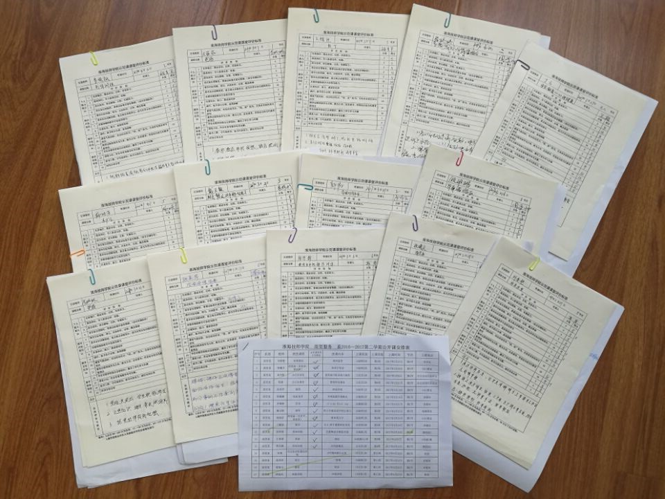 教务处在各系部上交的资料检查过程中发现,每个系部都能够按照公开课安排表准时上课,课前通知本系部无课教师积极听课,课后及时召集教师评课,与教务处查课记录吻合。基本上做到了上课不应付、听课不形式、评课不敷衍,过程资料保留完整,给我院示范课的选拔提供了有效的参考。