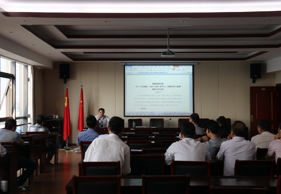 为充分发挥名教师、专业(学科)带头人、双师型骨干教师的带动引领作用,促进师资队伍建设,根据省、市相关文件精神,结合学院师资队伍实际,近期学院出台了《淮海技师学院“省、市名教师、专业(学科)带头人、双师型骨干教师”聘用考核办法》(以下简称《考核办法》)。为了使学院名教师、专业(学科)带头人、双师型骨干教师更好理解文件精神,5月16日下午,科研处组织召开《考核办法》学习会,全院省市教学名师、专业(学科)带头人、双师型骨干教师参加了会议。