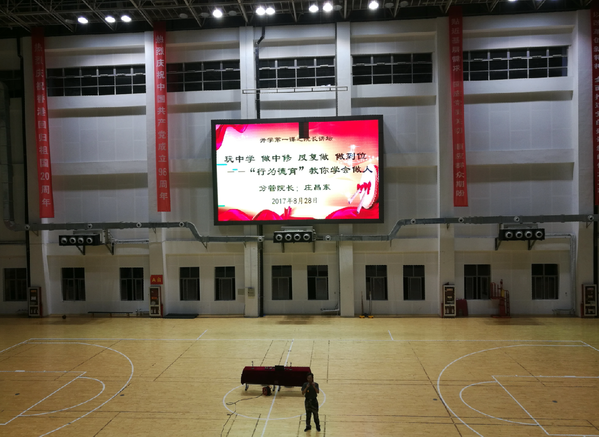 8月28日晚,我院在体育馆举行2017级新生入学教育大会。学院分管领导庄昌东、朱宇亮到会并开展主题讲座。学工处负责人王言明主持大会。