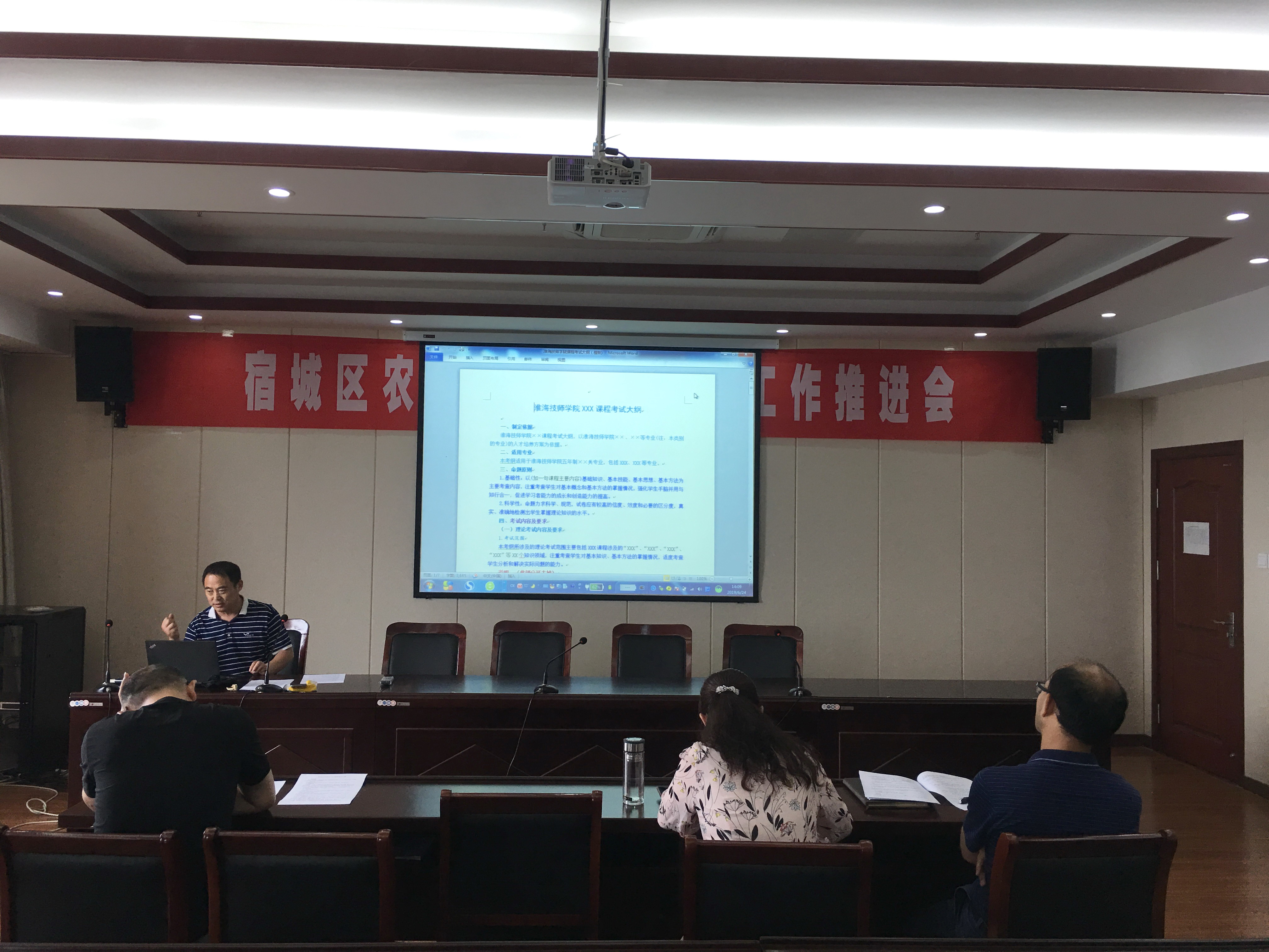 会上,科研处负责人于悟然与论证人员共同学习了学院课程考试大纲编写模板、考试大纲论证记录表等,确定了知识领域梳理规范性、知识点表述合理性及全面性、考试安排合理性等三个方面作为论证重点。随后,课程大纲编写负责人从课程大纲制定依据、适用专业、命题原则、考试范围、考试要求、考试形式、内容比例、考试样题等方面进行了汇报并现场答辩。评委对课程考试大纲内容认真审核,并提出修改、完善意见和建议。