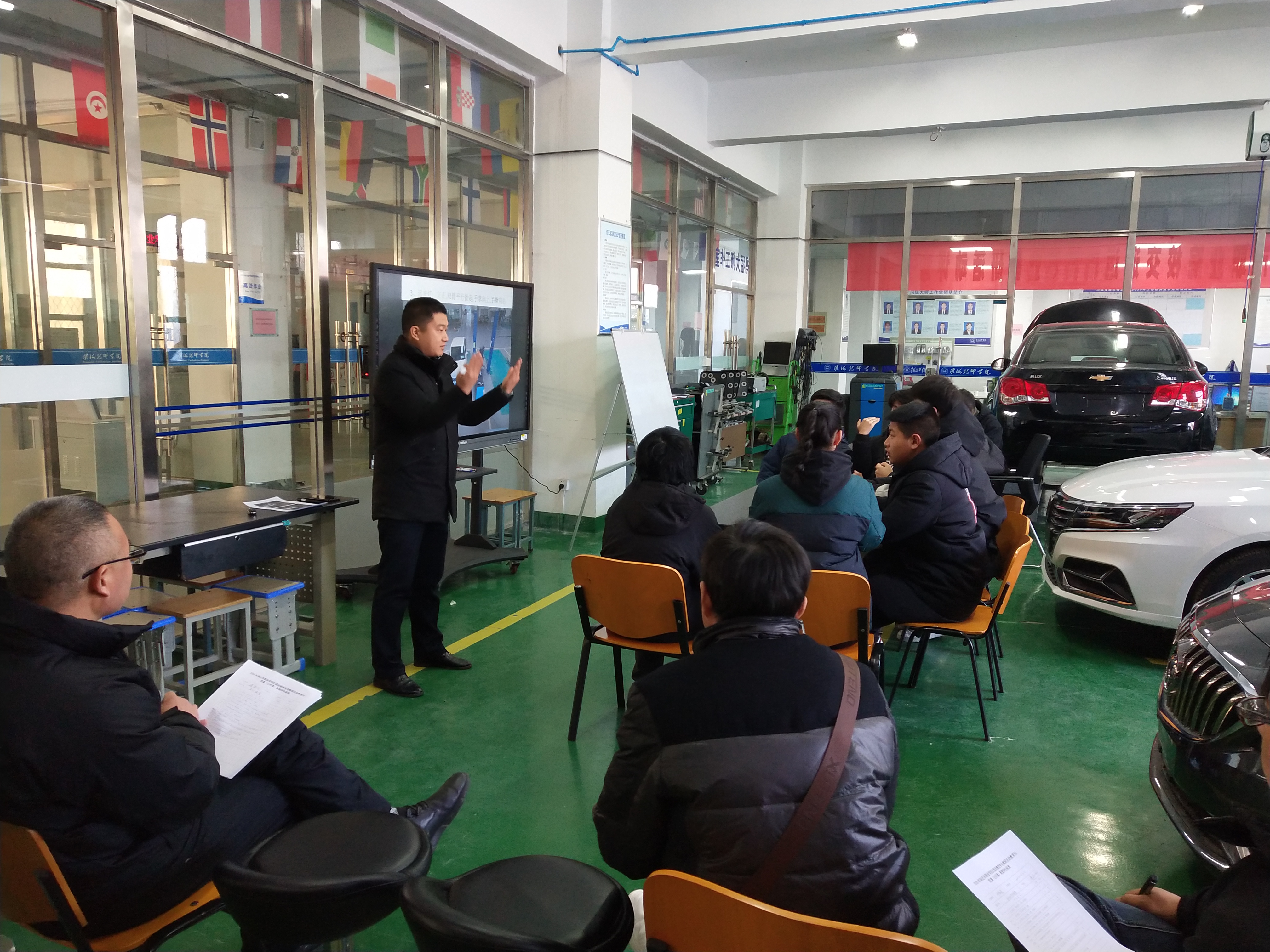 本次活动分为三个阶段进行。一是在汽车工程系实训车间开设了《汽车维护》、《汽车钣金》、《汽车喷漆》、《二手车评估与鉴定》等四个专业的四节公开课活动。授课教师围绕学生核心素养的培养设计教学内容,运用了多种信息化手段,收获了良好的教学效果。课后,开展了细致的评课。为汽车专业课程教学提供了多种教学方法的借鉴学习。二是由宿迁市开放大学教务处处长张峰老师为全体中心组成员开设了一堂“职业学校教学能力大赛专题讲座”。张老师从教学设计、教学实施、教师素养、特色创新等几个方面展开讲解,对自己参加省赛的作品做了详细的讲解。三是全国职业院校技能大赛车身涂装赛项裁判长、技术专家张小鹏为大家开展了一堂专业性较强的“职业技能大赛专题讲座”。讲座从大赛方案、比赛内容、技术要求、评分标准等几个方面进行了详细的讲解,并对中职技能大赛的训练和教练提出了一些建议,让大家对职业技能大赛有了更深的认识,对更好地开展集训提供了指导意见。