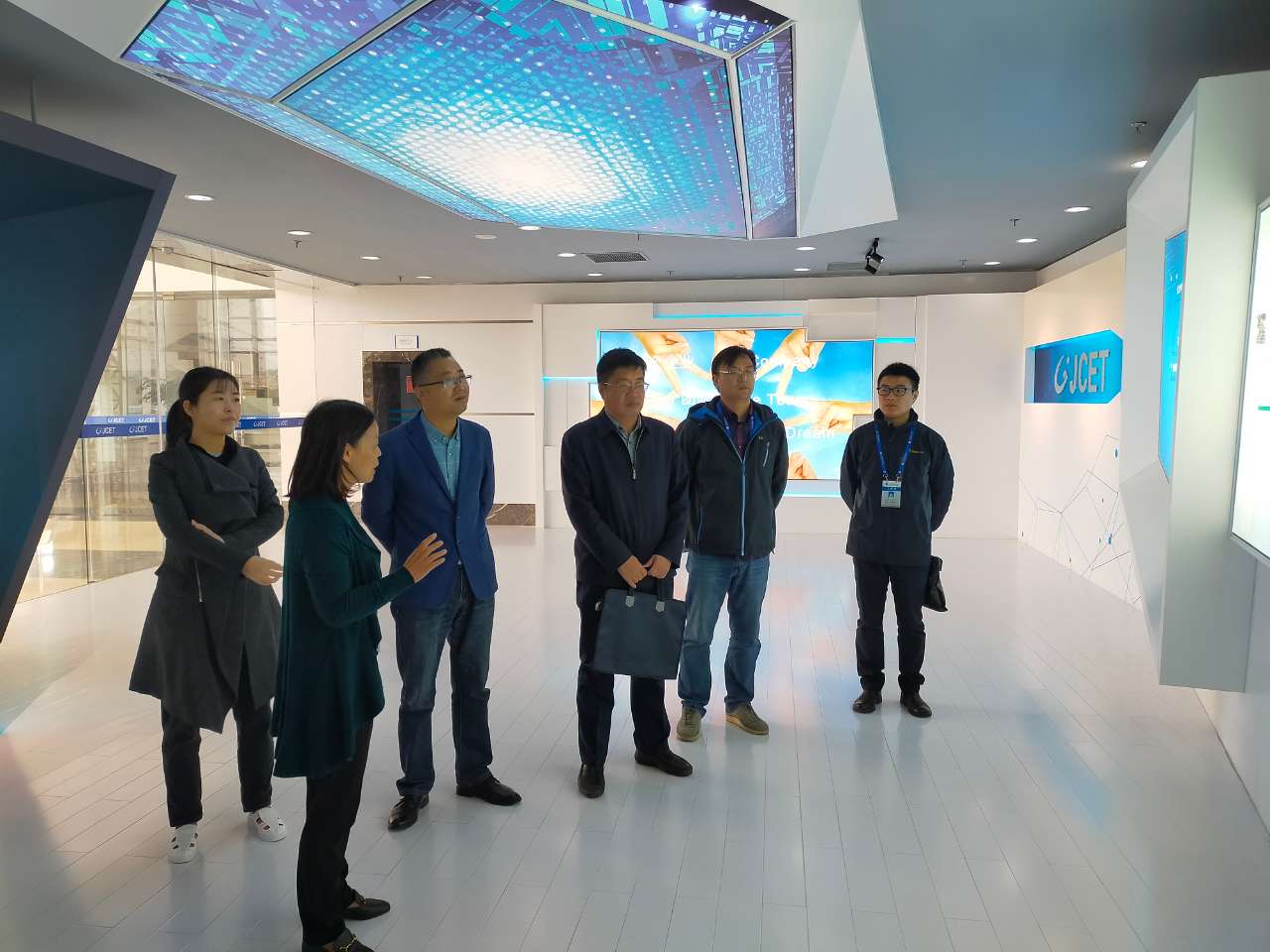 胡方军一行在企业综合管理处处长许静茹的陪同下,一起参观了企业生产、研发设计和销售展厅,向企业详细了解了学生在企业的学习生活情况,并与实习学生亲切互动交流。院领导首先表达了学院对同学们的关心与牵挂,并鼓励同学们在接下来的实习工作中多提高沟通能力、保持好心情、学习新技能,不断磨练自己的专业品质,争取成为企业技术骨干人才。