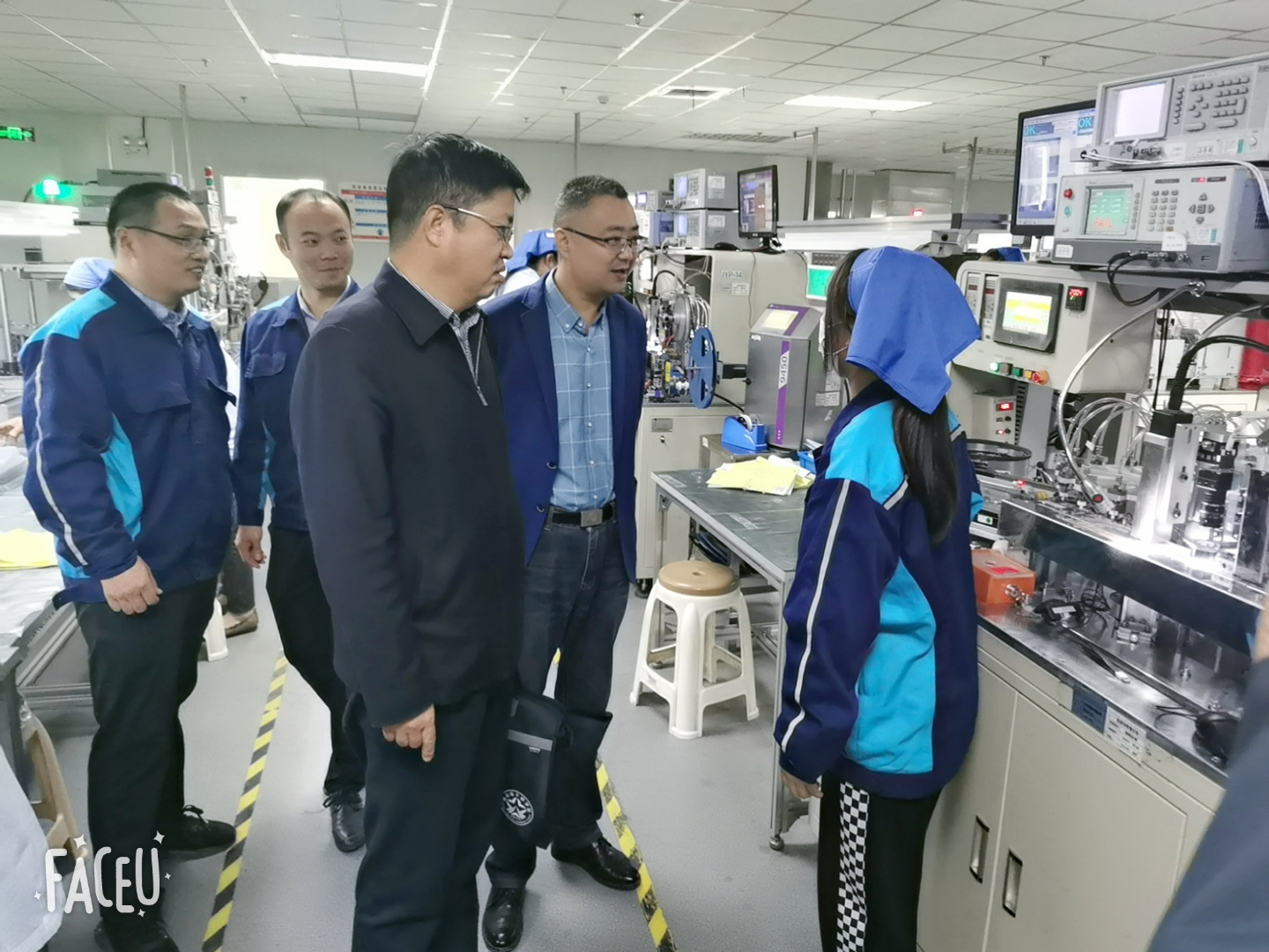 胡方军一行在公司副总经理王飞跃的陪同下,一起参观了企业生产车间,深入车间、深入岗位详细了解学生在企业的工作、食宿情况。企业负责人对院领导带队的深入走访表示欢迎,对我院工学交替学生在工作中的态度表示满意。