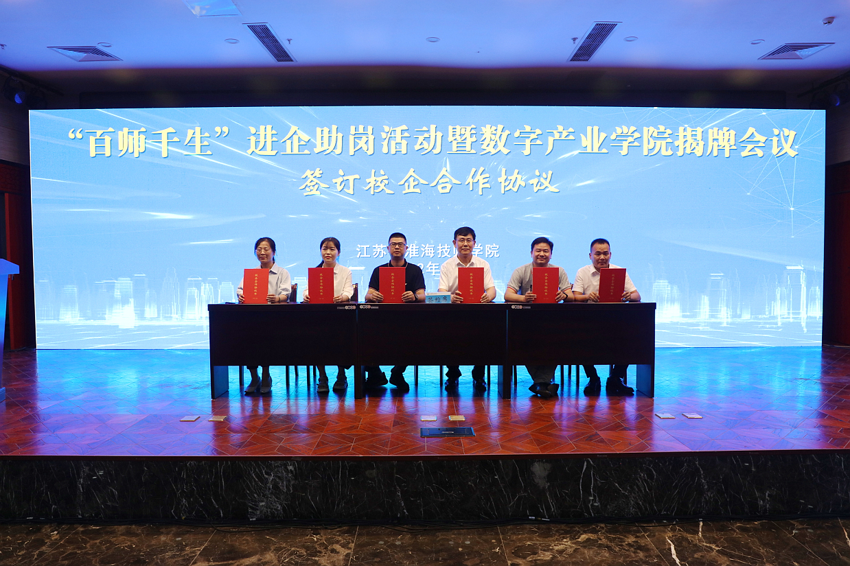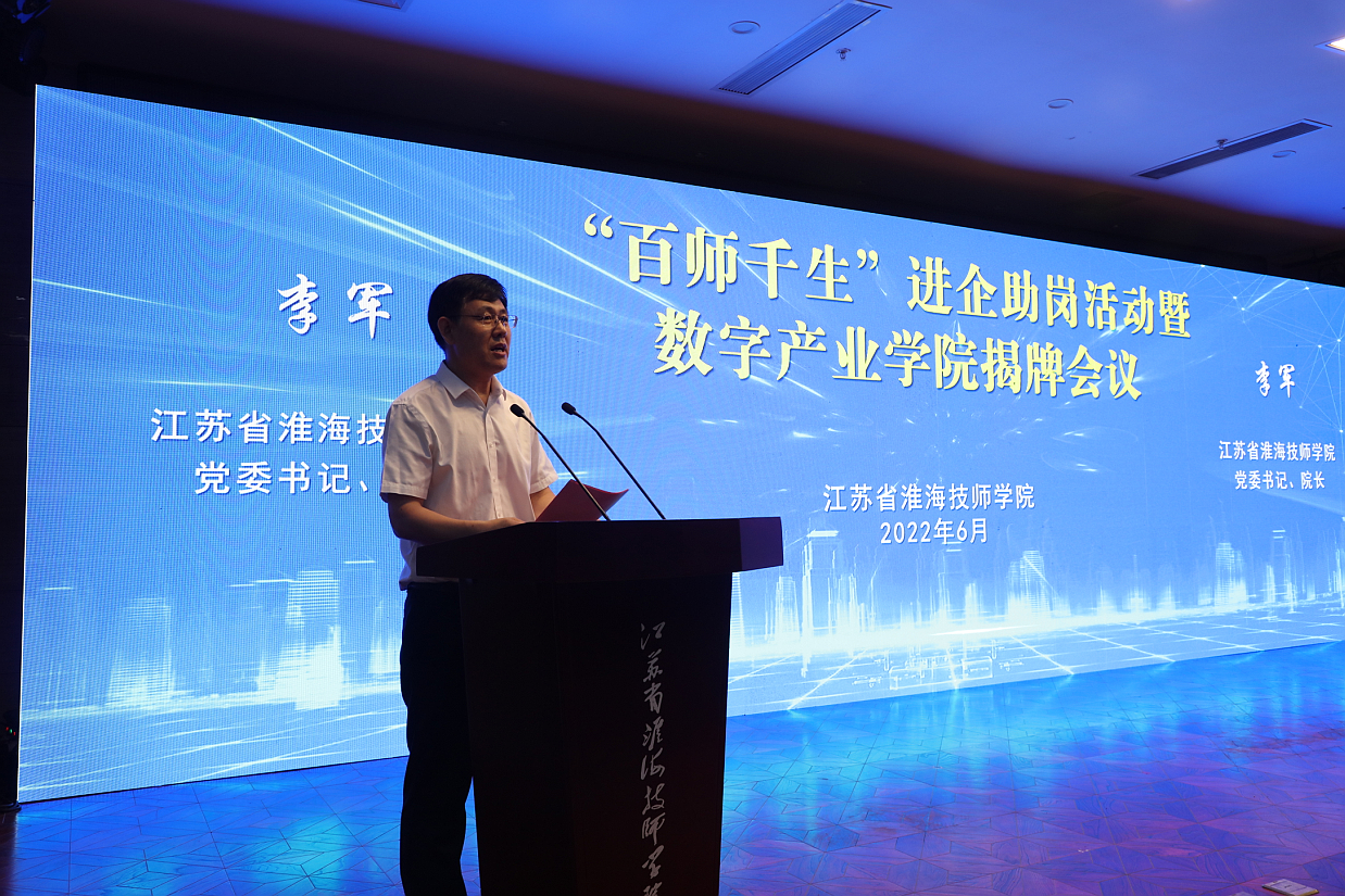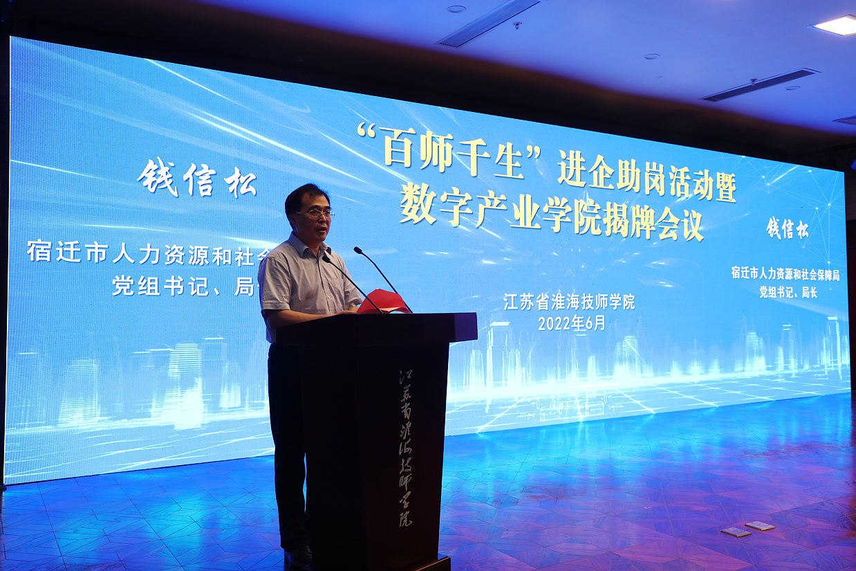 为深入贯彻落实党中央国务院、省委省政府关于保市场主体保就业保民生决策部署和省人力资源和社会保障厅“百校千企万岗”技校助企送工专项活动暨技工院校产教融合工作会议精神, 6月30日,我院举行“百师千生”进企助岗暨数字产业学院揭牌会议。市人社局党组书记、局长钱信松,学院党委书记、院长李军,学院党委班子全体成员出席活动,合作企业代表、全体教职工、学生代表等参加活动。市人社局副局长唐厚晨主持活动。