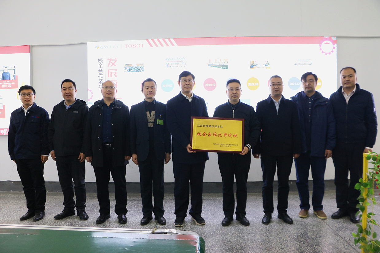 李军一行首先来到校企合作企业格力大松(宿迁)生活电器有限公司,考察学生的实习环境,了解学生实习情况,听取公司总经理王汉文对公司的情况介绍,并与公司领导深入交流,就深化校企合作、校企共同发展等方面进行了探讨。