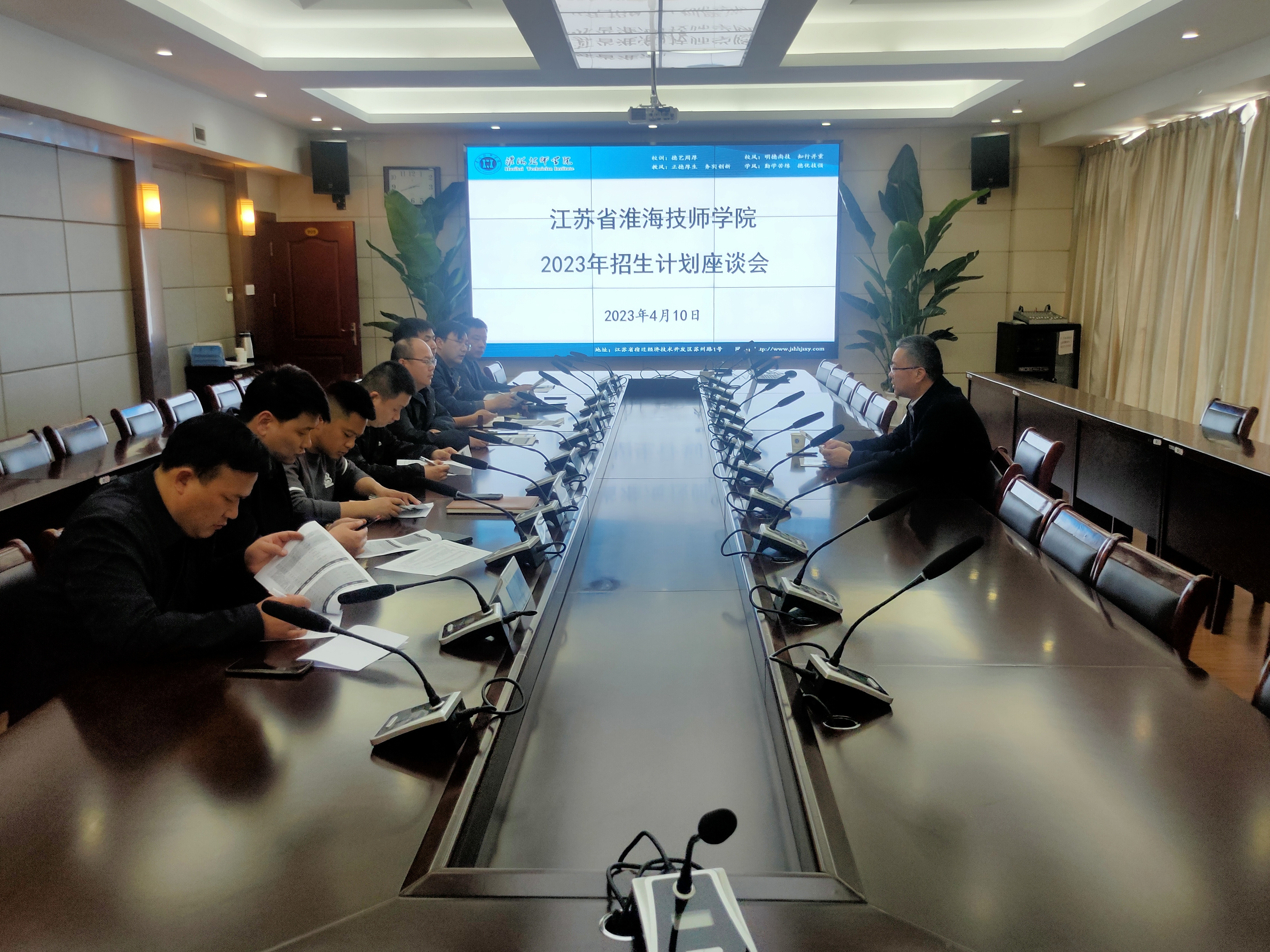 4月10日下午,我院在行知楼909会议室召开2023年招生计划座谈会。会议由学院副院长李刚主持,招生就业处、教务处及各系部负责人等参加会议。