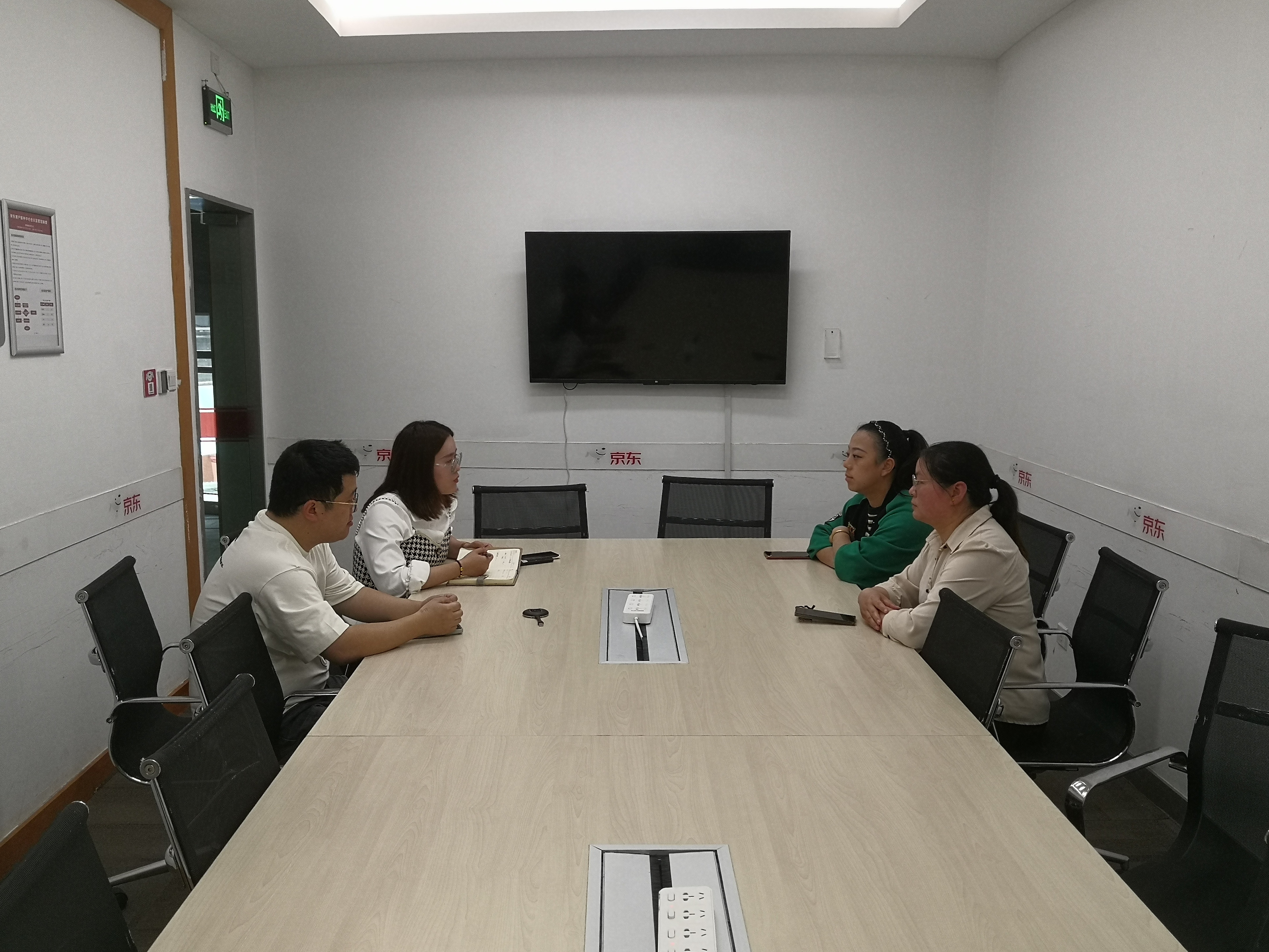 京东人力资源部高瑞经理热情接待了我院一行,并陪同一一走访顶岗实习学生。走访中,高瑞经理和相应部门主管对我院顶岗实习学生的工作表现给予了高度肯定,认为我院培养的学生踏实肯干,兢兢业业,能很好的适应岗位要求,具有扎实的实践能力和团队合作精神,并表示愿意与我院开展长期的合作。校企双方共同就学生跟踪管理、安全教育等方面进行了沟通交流,并围绕进一步完善实习工作、提高技能人才培养以及用人单位和社会对人才培养的需求状况进行了探讨。