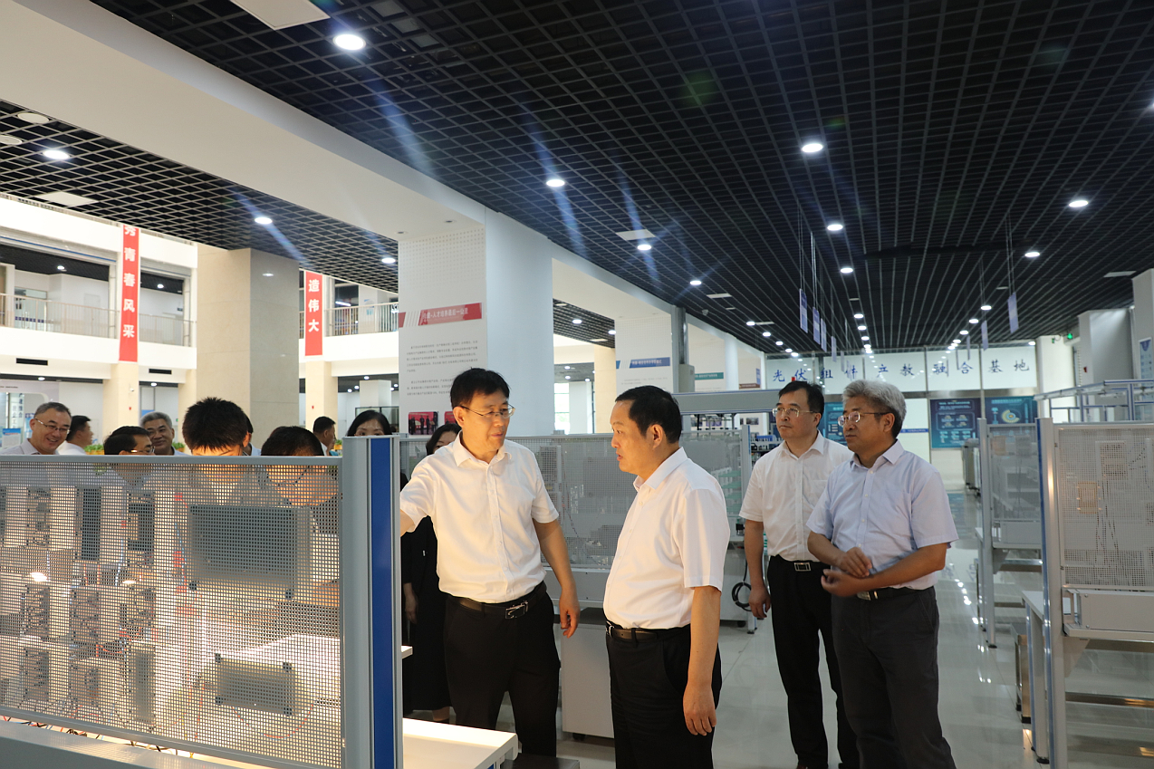 冯岩一行参观了我院无人机实训中心、光伏产业学院、机器人实训中心、国家级技能大师工作室等地,听取学院基本情况、发展历程和技能人才培养情况介绍,对我院充分发挥技工教育特色,加强项目建设,注重学生技能训练和能力培养给予了充分肯定,要求学院在今后工作中充分发挥高技能人才培养主阵地作用,加强对高技能人才的培养力度,以服务发展、稳定就业为导向,大力弘扬劳模精神、劳动精神、工匠精神。