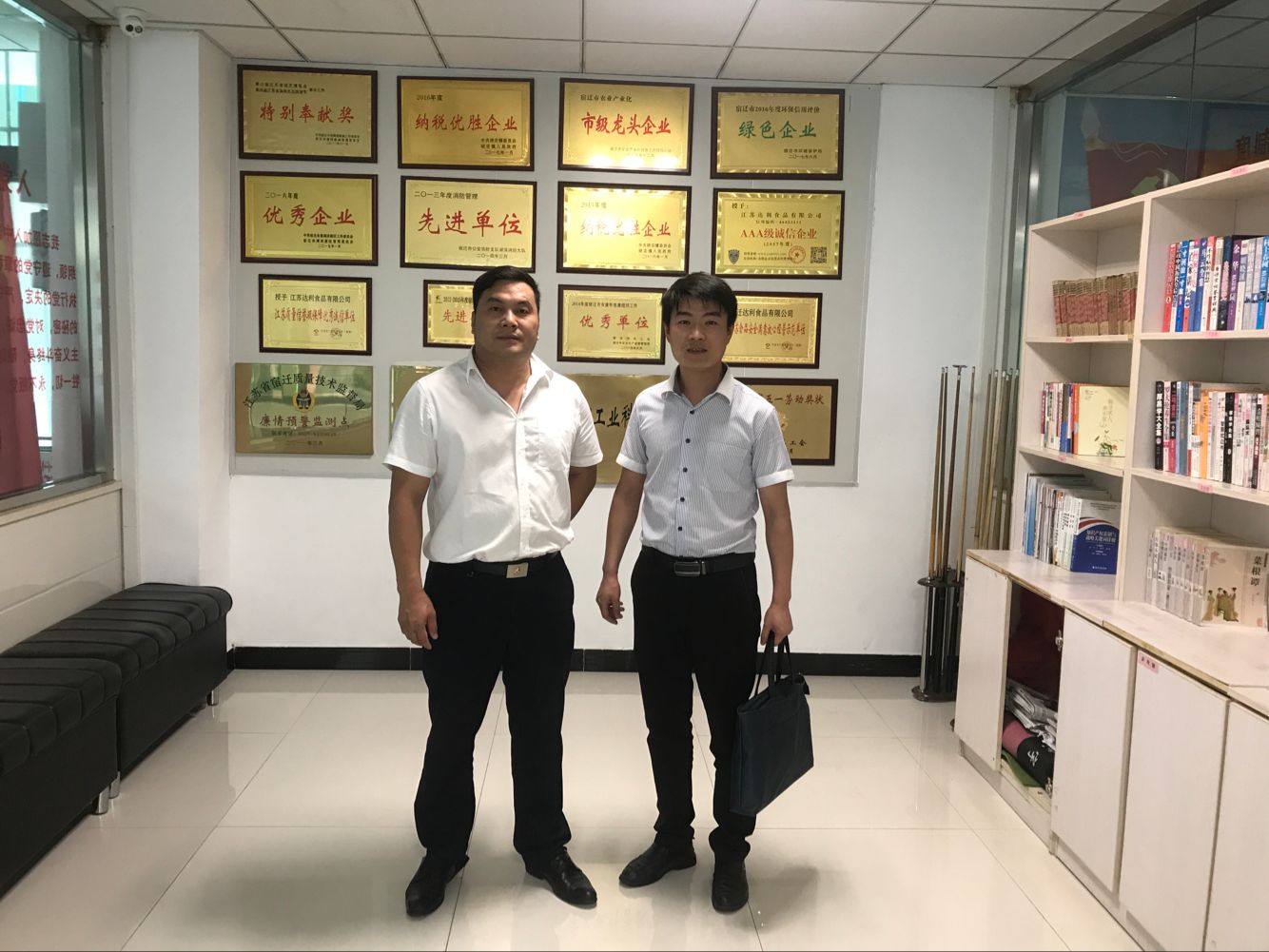 会谈结束后,谢灿平董事长一行带领招生就业处负责人王涛参观了公司产品展示大厅及加工车间。