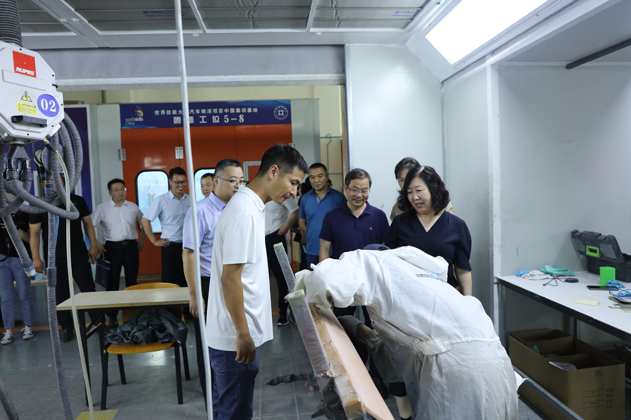 李瑞华一行先后参观了学院高铁乘务实训中心、京东电商产业学院、酿酒工作室、天岗锣鼓工作室、烙书烙画工作室、泥塑工作室、剪纸艺术工作室、数控加工实训中心、机械加工实训中心、国家级技能大师工作室、省级技能大师工作室、网易传媒产业学院、中德学院、苏驰汽车产业学院、汽车喷漆世赛集训基地等地,对我院优美的校园环境、高端的硬件设施、先进的教学理念、鲜明的办学特色给予高度赞扬。