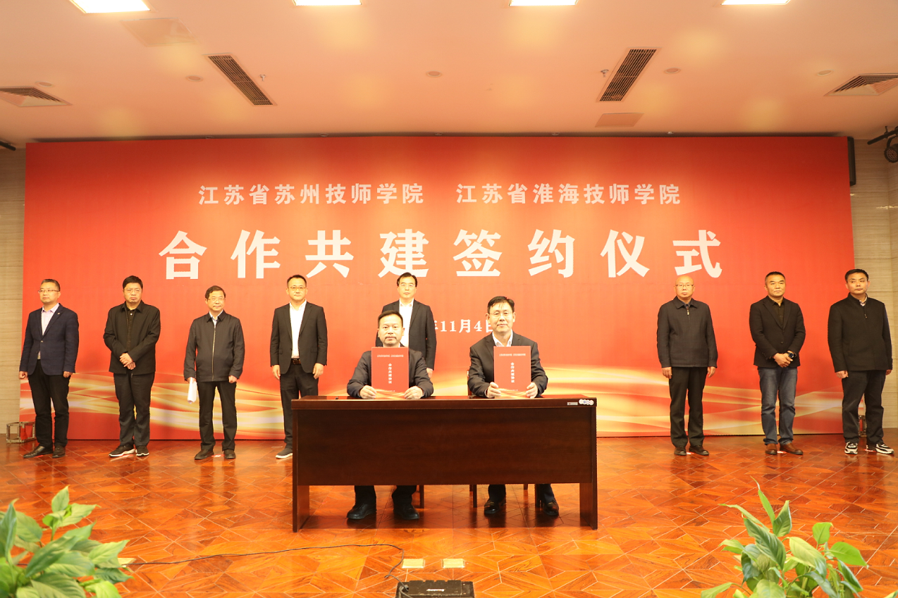 为响应省委、省政府《关于深化南北结对帮扶合作的实施意见》,推进苏南苏北挂钩合作战略布局,落实省人社厅关于加强技工院校合作交流的相关要求,进一步加大技能人才培养力度,提高培养质量,更好实现对产业转型升级的人才支撑,11月4日,我院与江苏省苏州技师学院举行合作共建签约仪式。市人社局党组书记、局长钱信松,江苏省苏州技师学院党委书记、院长顾正明,副院长曹亮,我院党委书记、院长李军及学院领导班子全体成员出席签约仪式,两校相关部门负责人、教师代表及企业代表等参加仪式。市人社局副局长唐厚晨主持签约仪式。