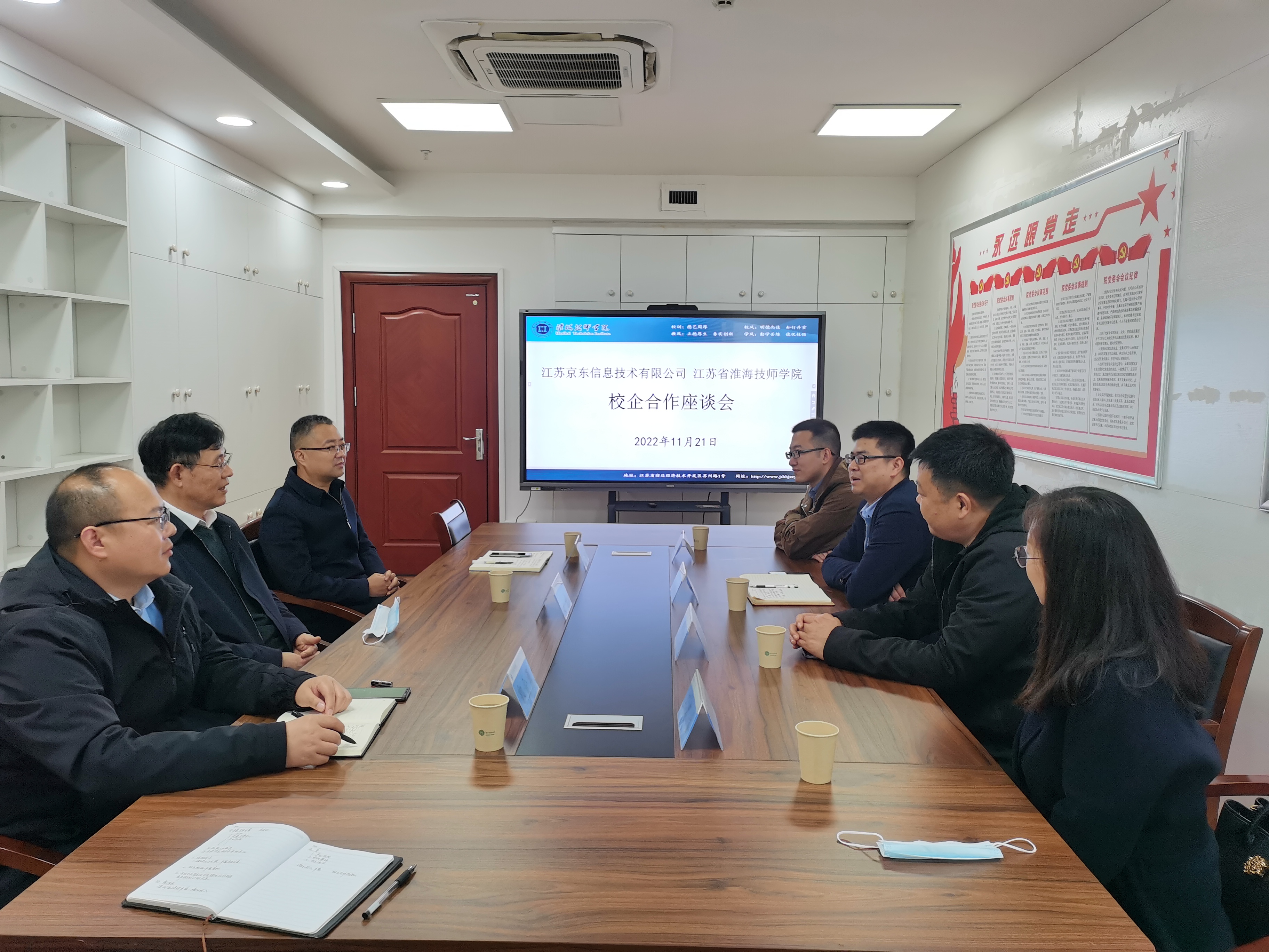 11月21日上午,江苏京东信息技术有限公司党委副书记、人力资源部高级经理徐旭、校企合作部经理陆秋静,江苏京东金科信息技术有限公司校企合作部经理蒋继禹,智才教育科技(江苏)有限公司总经理马冬梅一行来我院开展校企合作洽谈。学院党委书记、院长李军,副院长李刚,招生就业处处长郭宜勇参加座谈交流。