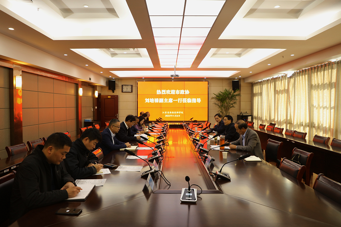11月6日上午,市政协副主席刘培禄一行到我院就“推动职业教育更好服务地方产业发展”进行调研座谈。学院党委书记、院长李军带领领导班子及相关部门负责人陪同调研。