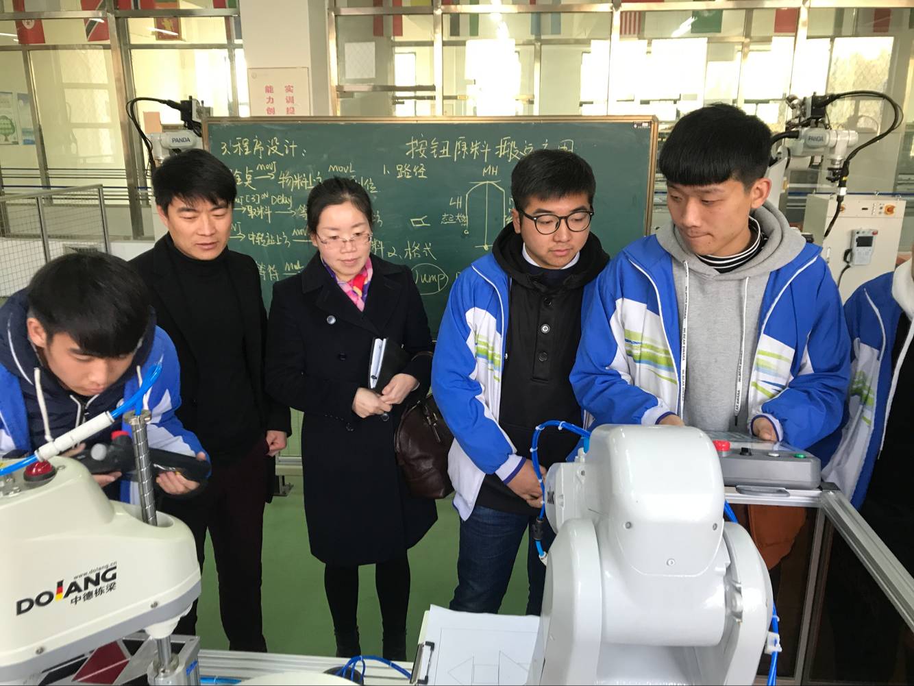会后,王涛陪同贾蕾一行参观了学院实训中心各专业实训室。