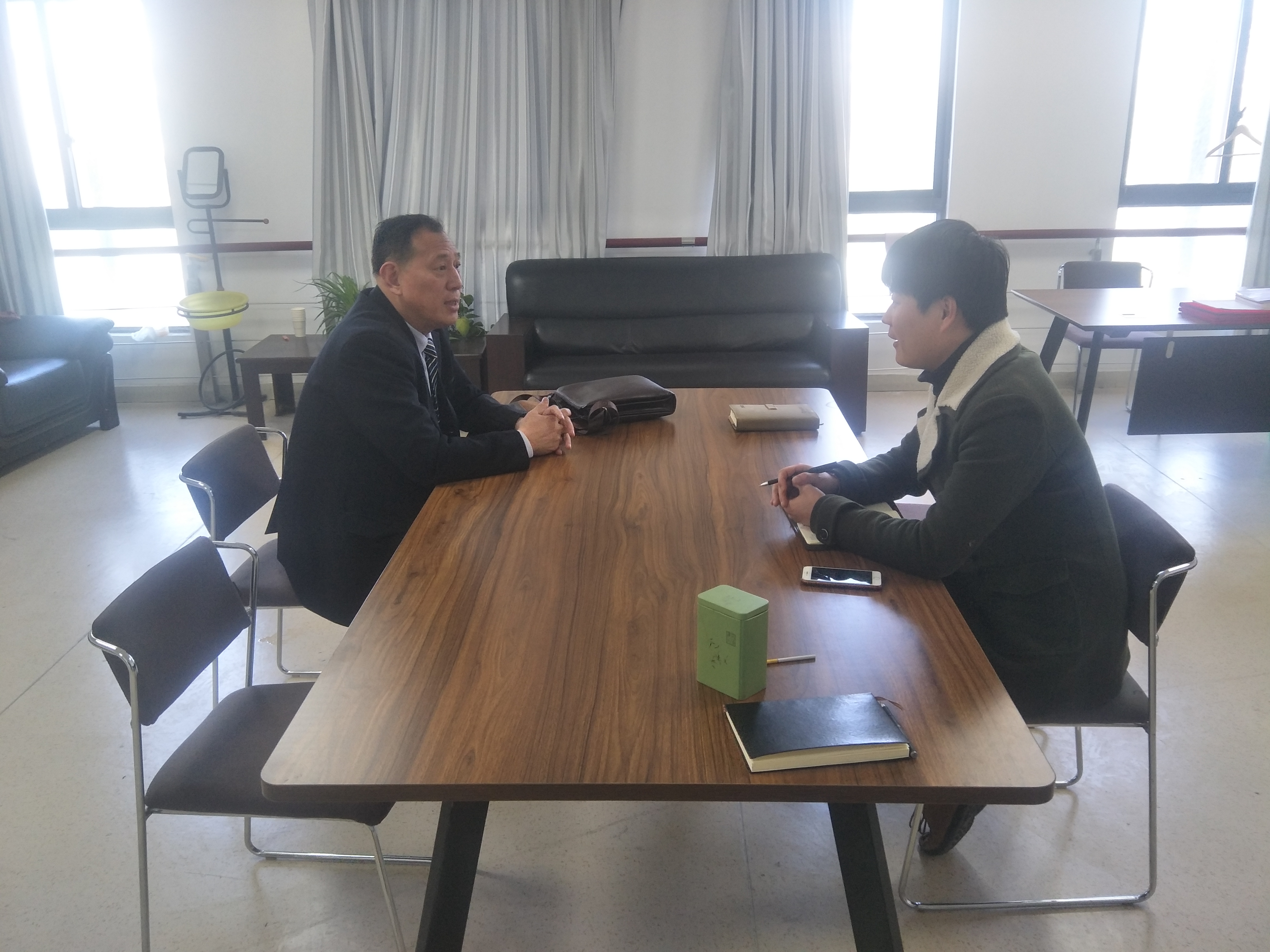 3月21日上午,宿迁市长城保安公司总经理沈习春到我院洽谈合作,受到招生就业处负责人王涛的热情接待。