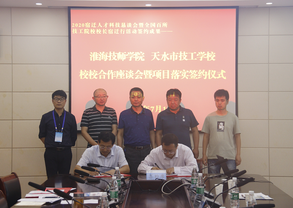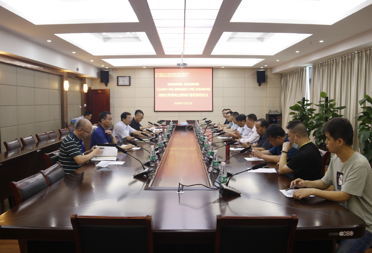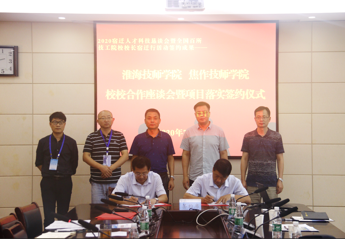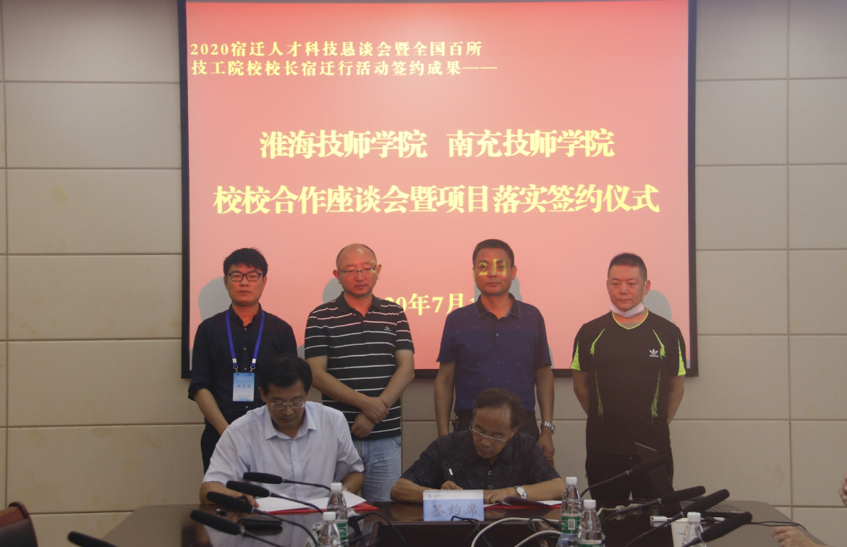 在7月11日举行的2020宿迁人才科技恳谈会暨全国百所技工院校校长宿迁行活动中,我院与多家兄弟院校签订了校校合作协议。7月12日上午,我院迅速对接相关院校,举行校校合作座谈会暨项目落实签约仪式,进一步细化合作内容,推动合作项目落实落地。学院院长、党委副书记张兵营出席签约仪式。党委委员、副院长、党政办公室主任朱宇亮主持签约仪式。