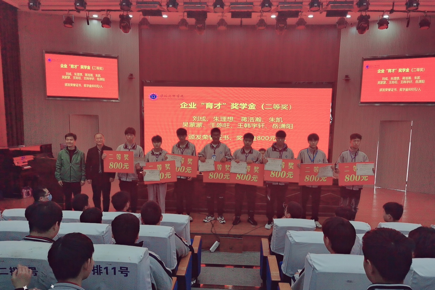朱石磊、罗杰宣读了冠名班奖、助学金表彰决定以及受助学生名单和金额,院领导依次为受奖和受助的学生代表颁发荣誉证书和奖、助学金。此次共有48名同学获得表彰奖励,其中一等奖学金4名,获得奖金1000元;二等奖学金8名,获得奖金800元;三等奖学金12名,获得奖金500元;助学金24名,获得奖金300元。一等奖学金获得者马越代表获奖学生发言,表达了对学院、企业、老师的感激之情。
